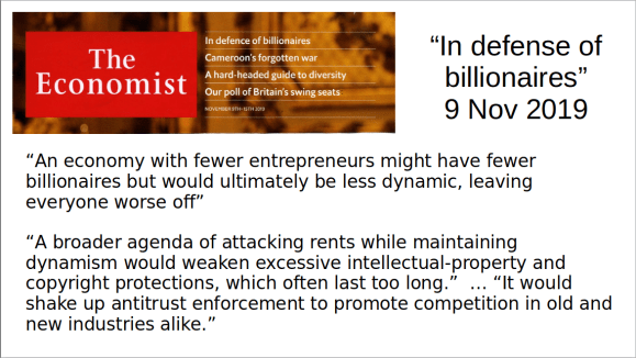 A broader agenda of attacking rents: weaken Intellectual Property Rights and shake up antitrust enforcement to promote competition.